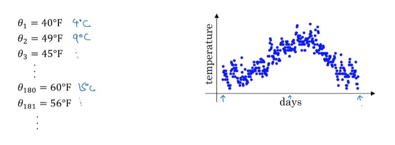 평균을 계산하는 가장 정확하고 최선의 방법은 아니다. 명시적으로 10일 또는 50일 간의 온도를 더하고 10이나 50으로 나누는 것이 더 나은 추정치를 제공한다. 그러나 이는 더 많은 메모리를 필요로 하고 더 복잡한 규현이라 컴퓨터적으로 많은 비용이 필요하다.