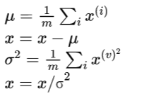 여러분이 로지스틱 회귀 등으로 모델을 학습시킬 때 입력 변수들을 정규화하면 학습이 빨라졌던 것을 기억하시나요? 평균을 계산할 때는 입력변수의 평균을 뺐고 분산을 계산할 때는 x(i)^2를 사용했다. (하나씩 제곱해준다는 것임) 이 값을 정규화해준다.